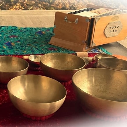In der Entspannungsphase kannst du den regenerierenden Tönen von Klangschalen und Obertoninstrumenten lauschen.